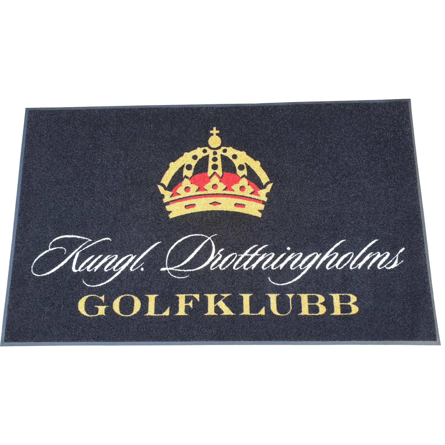 Med logo og tekst. 100% nylon med gummibagside og 10 mm gummikant, Vaskes på 60° C.