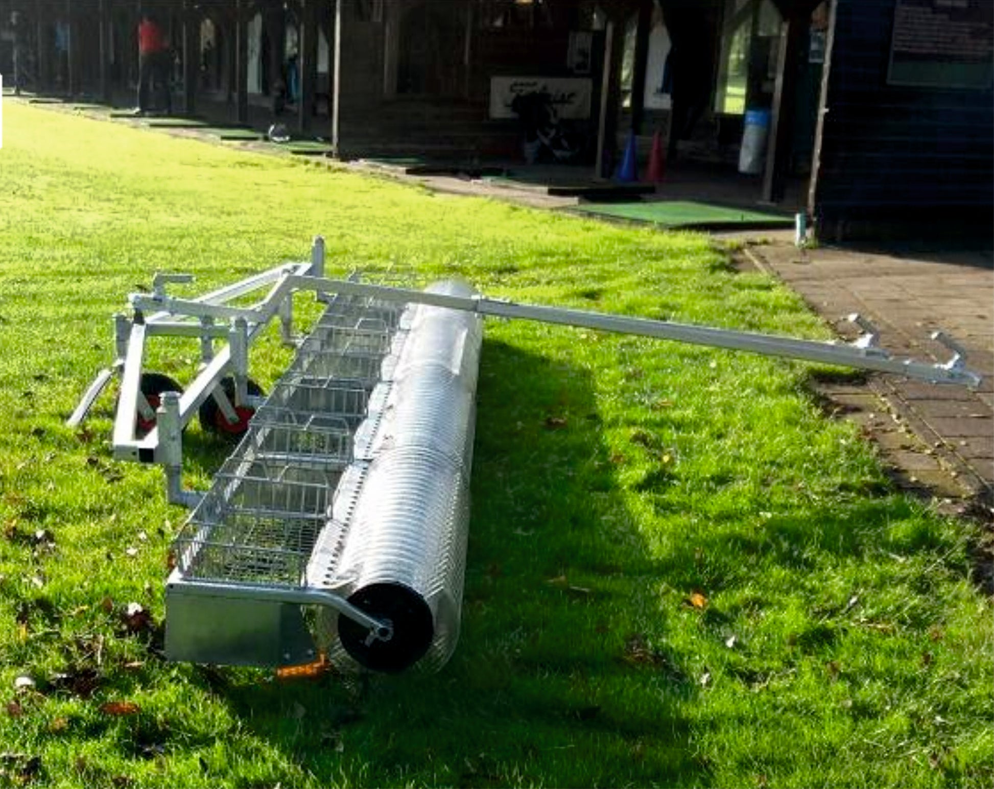 Lättviktsmodell (100 kg) innebär inga skador på gräset på driving rangen.