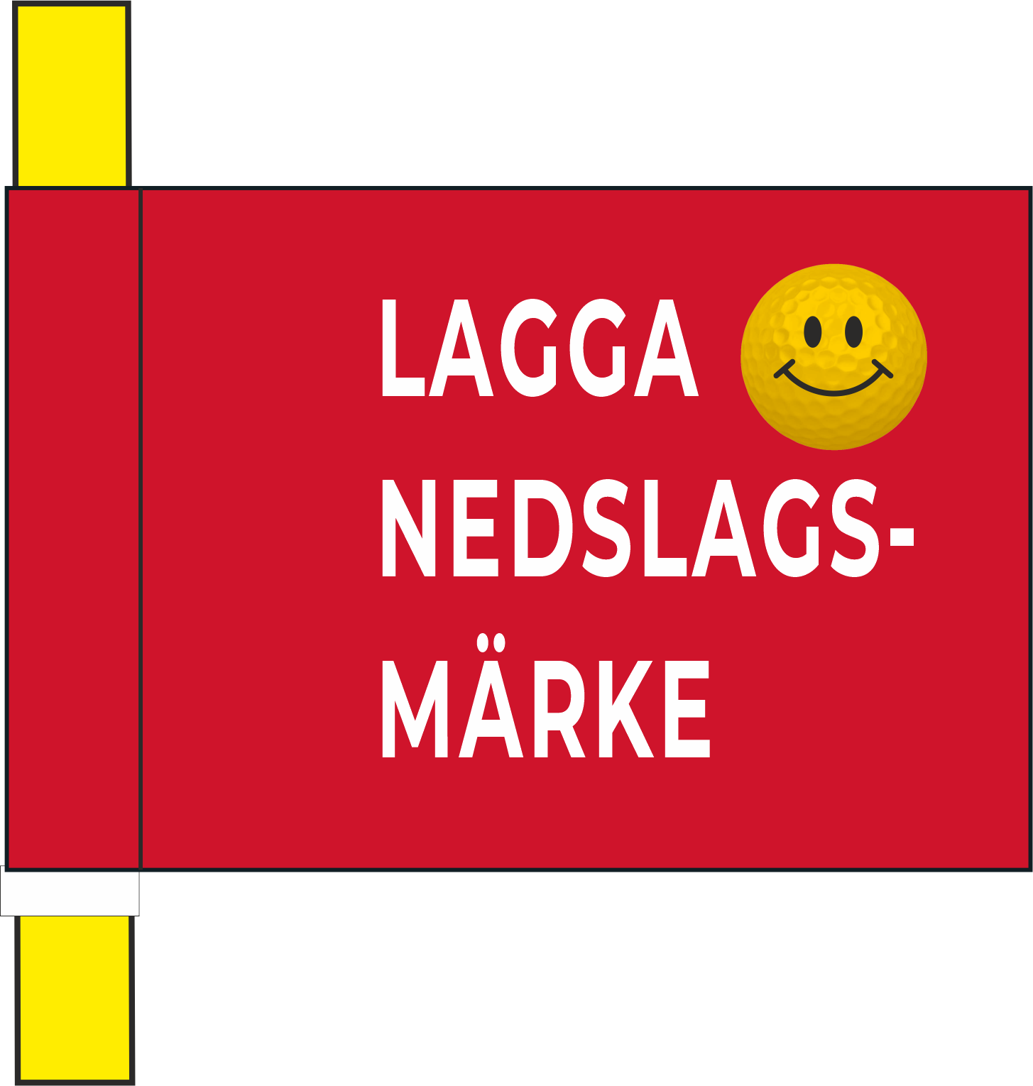 Markeringsflagga röd med texten ”Laga nedslagsmärke” plus smiley