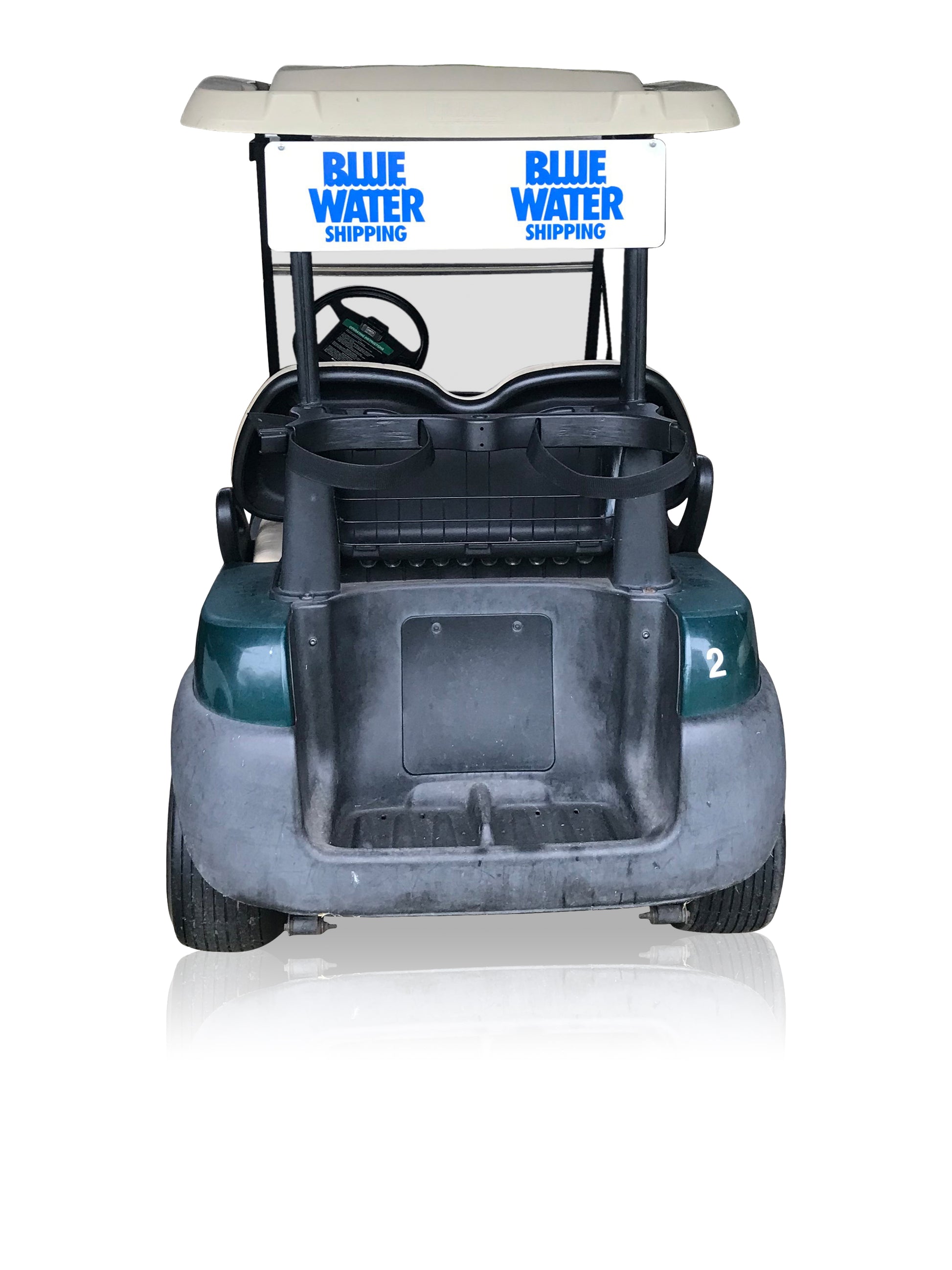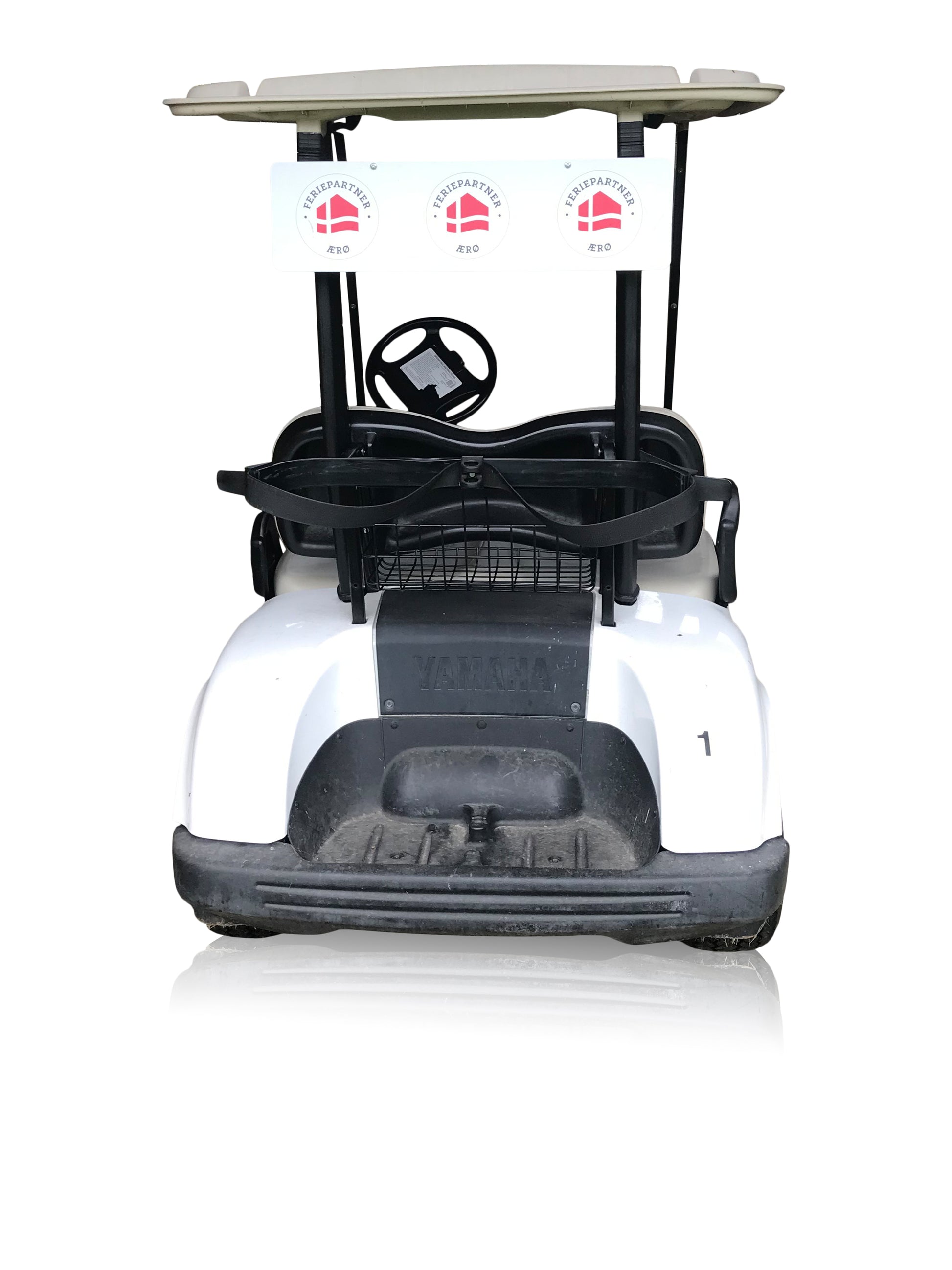 Skyltplatta med tryck till bak på en golfbil
