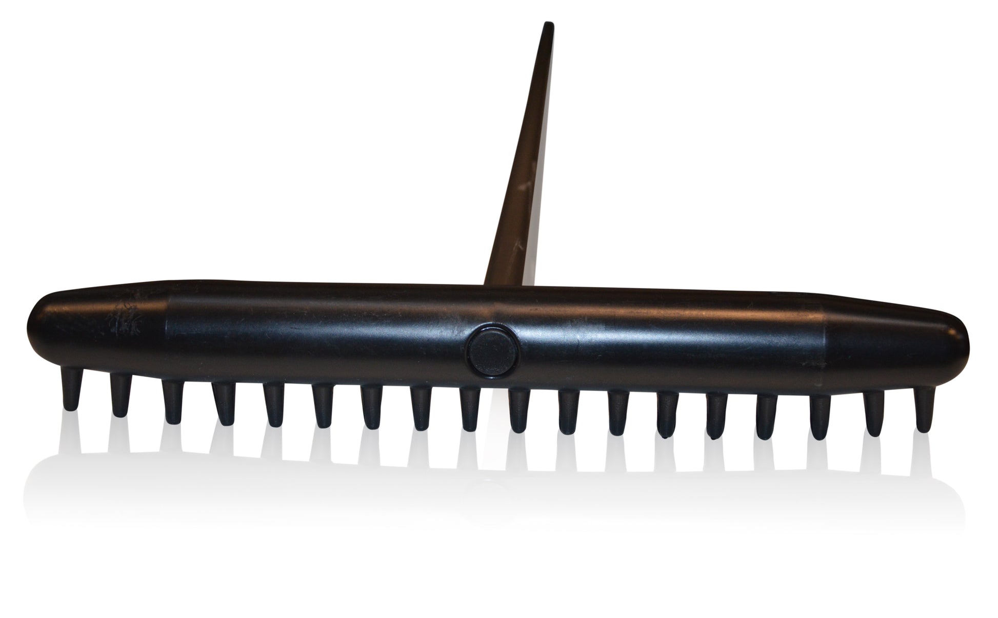 Baksidan av krattan flyttar sanden tillbaka in i bunkern. Och du kan också göra ”Aussie-metoden” när du krattar bunkrar med den här krattan