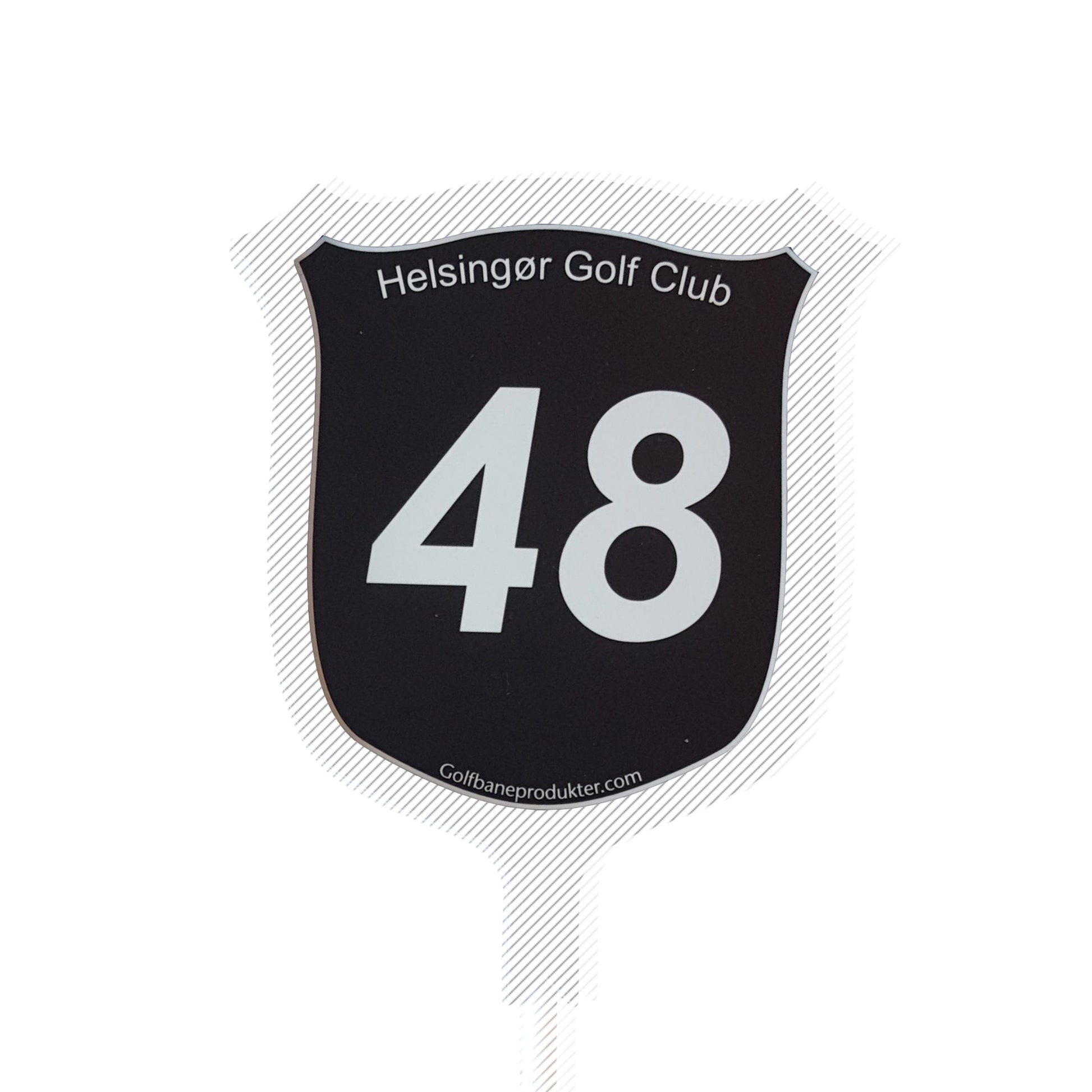 Klistermärke för hektrometersystem modell sköld. Svart bakgrund och vit text