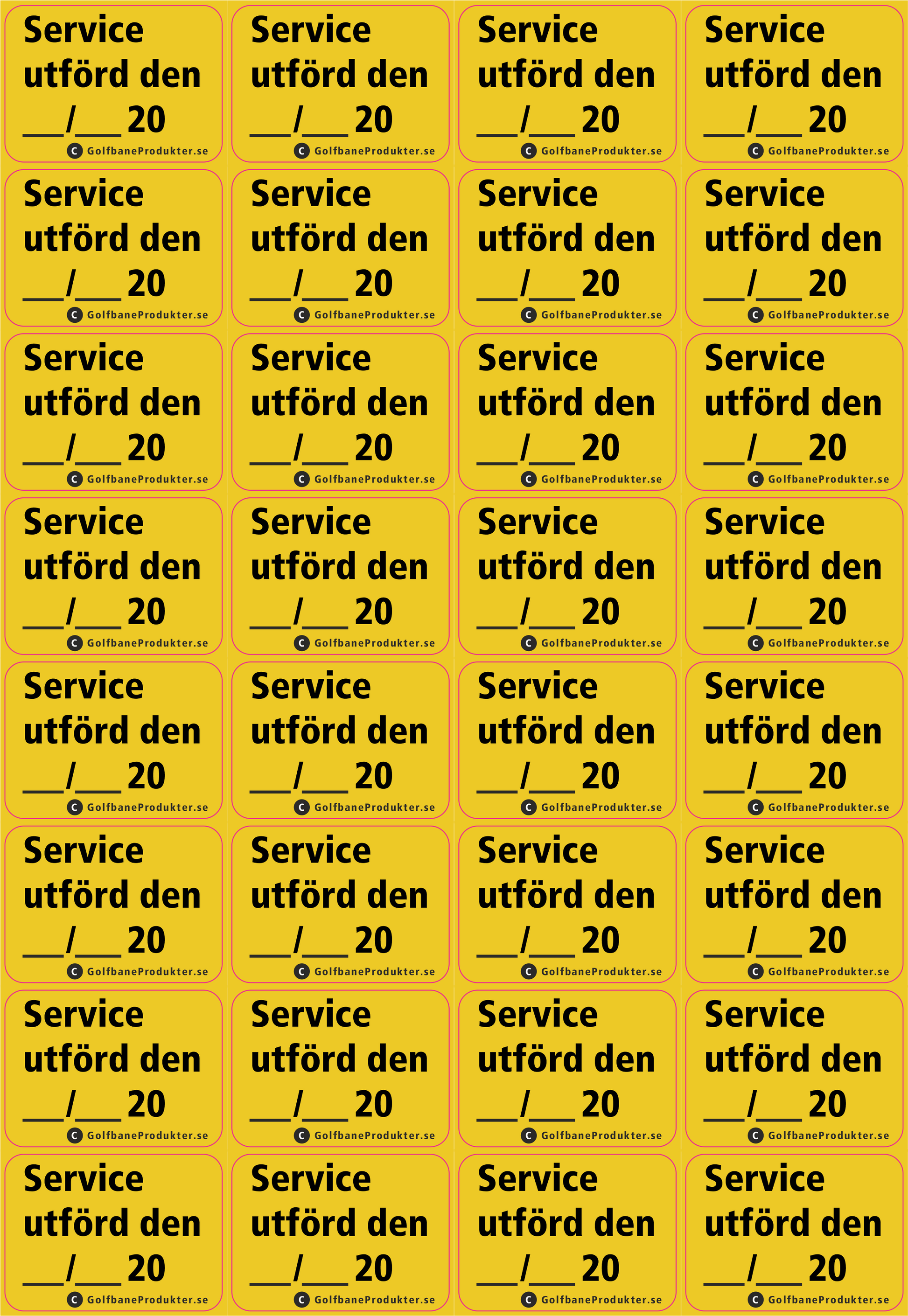 Klistermärke: Service utförd: _/_20`