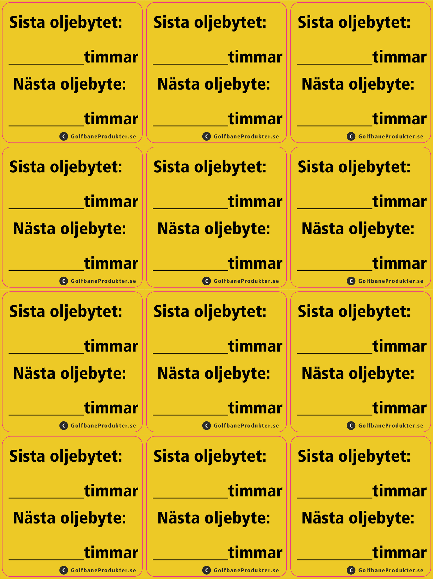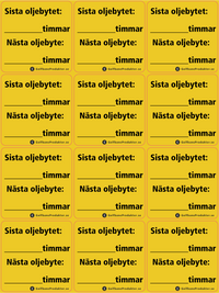 Tekst: 'Senaste oljebyte: ________timmar. Näste oljebyte:________timmar.'