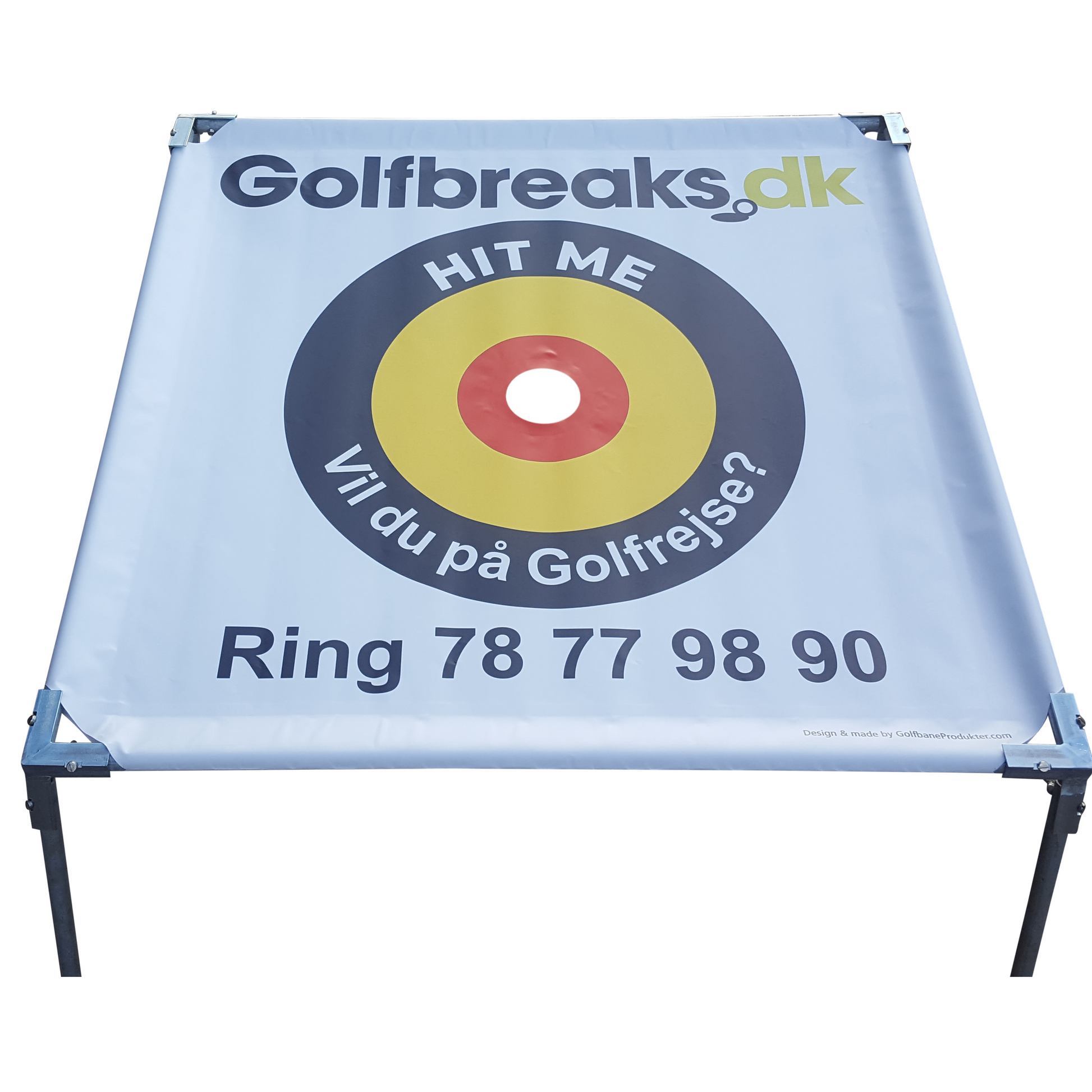 Bulls Eye i pvc-dug. Står stabilt men er alligevel let at flytte. Leveres med valgfri tekst/logo.